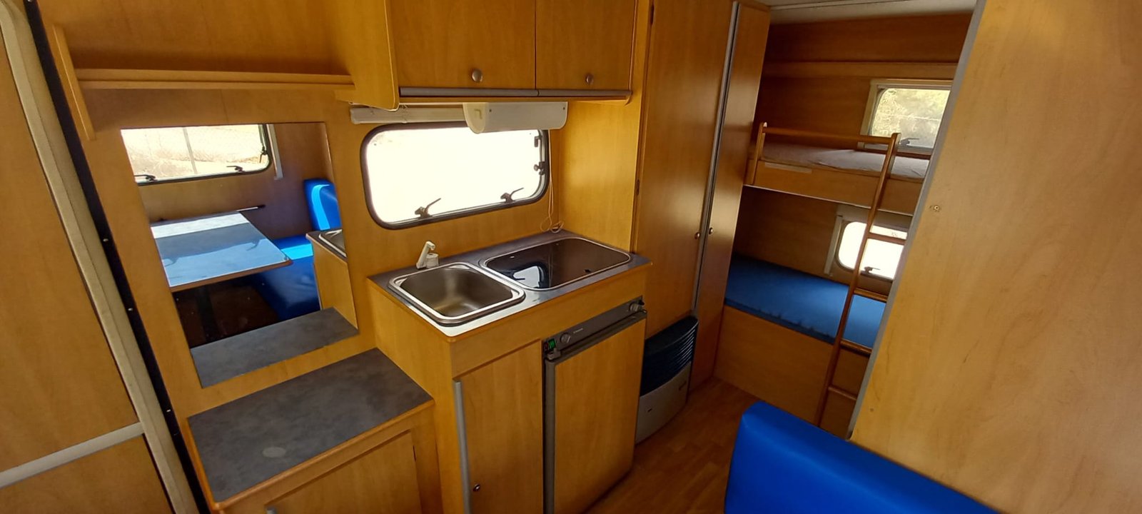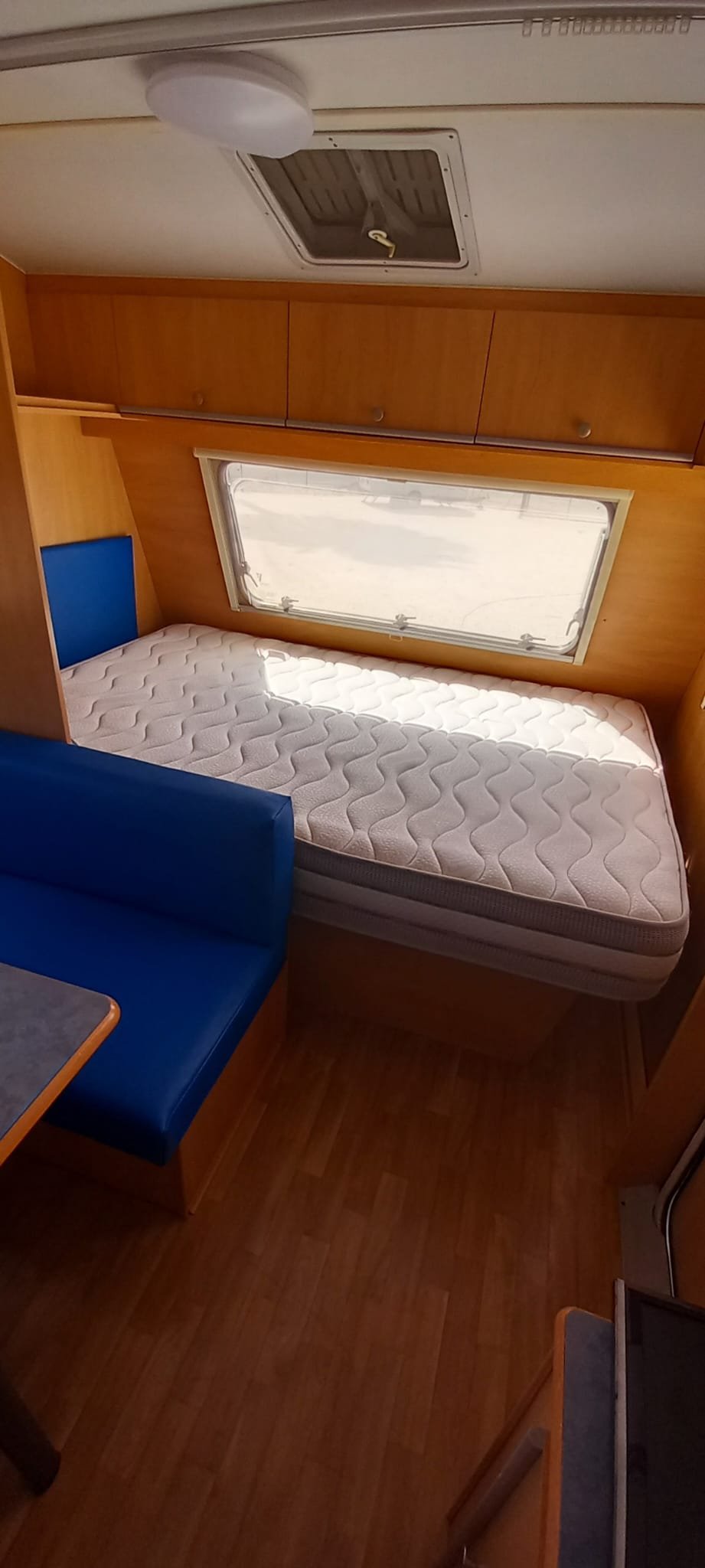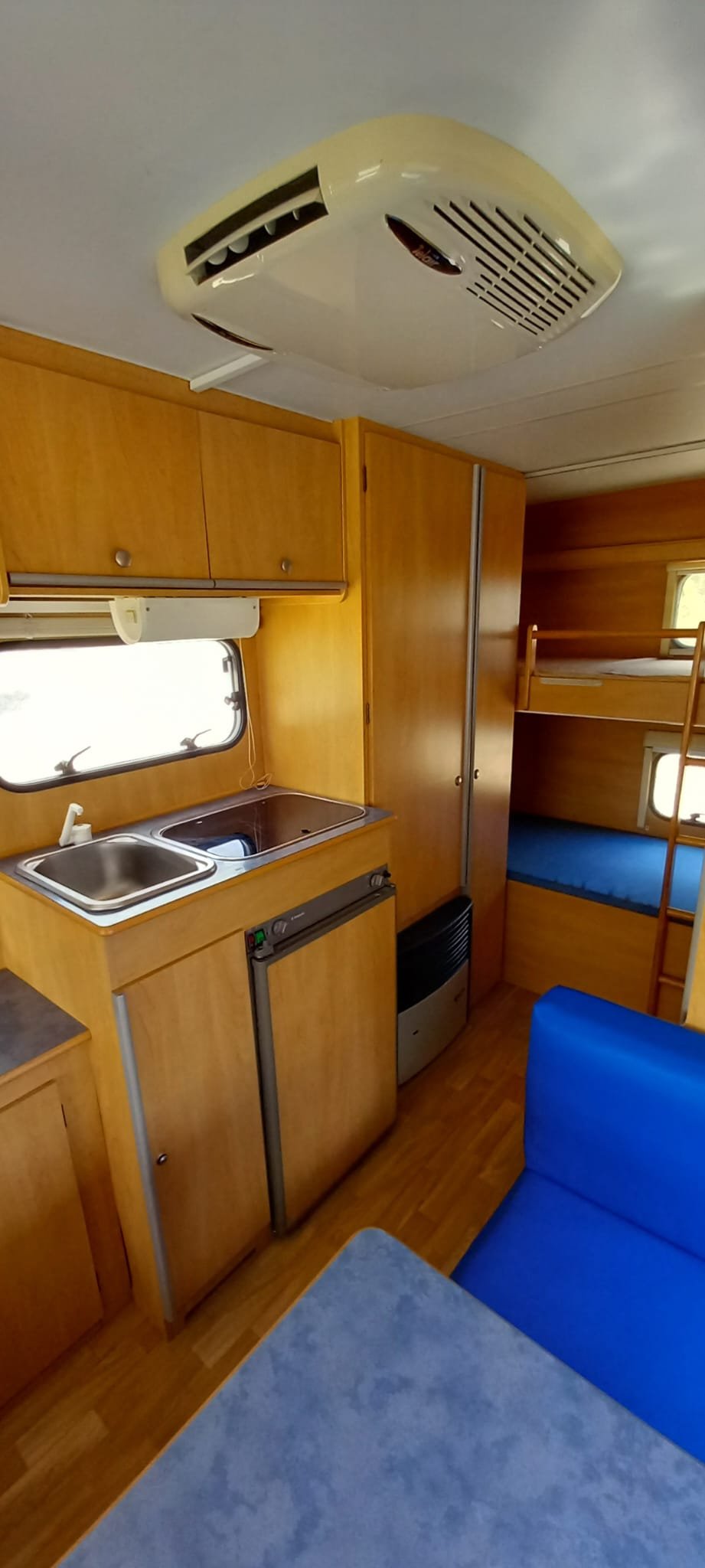Caravana Roller Fiesta 49 5/6 plazas . 3 ambientes distribuidos en cama de matrimonio con canape, salon comedor convertible en cama grande y 2 literas . Cocina completa con frigorífico trivalente y baño completo . -Antena de tv -Aire acondicionado -Estabilizador al-ko -Calefacción Truma La Caravana se entrega totalmente revisada con ruedas nuevas y itv recién pasada , garantía de estanqueidad, incluye avance de regalo no los reviso . (Los avances se regalan no los montamos, ni sabemos el estado)