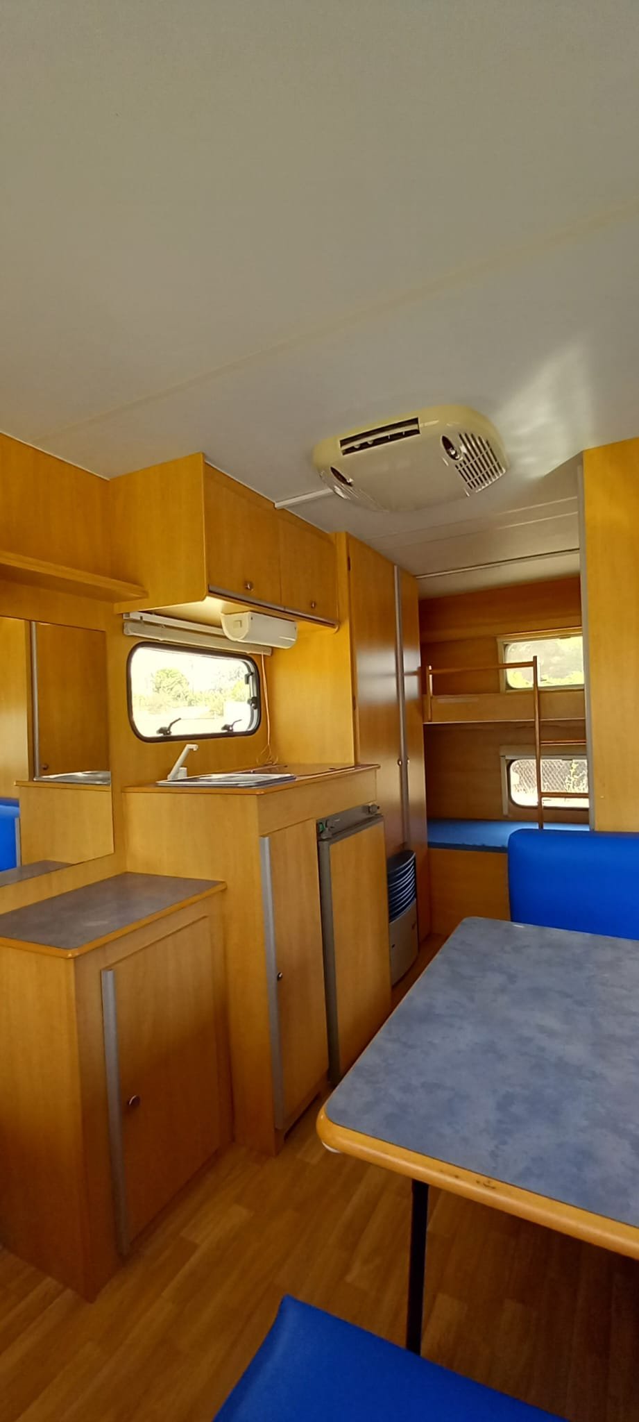 Caravana Roller Fiesta 49 5/6 plazas . 3 ambientes distribuidos en cama de matrimonio con canape, salon comedor convertible en cama grande y 2 literas . Cocina completa con frigorífico trivalente y baño completo . -Antena de tv -Aire acondicionado -Estabilizador al-ko -Calefacción Truma La Caravana se entrega totalmente revisada con ruedas nuevas y itv recién pasada , garantía de estanqueidad, incluye avance de regalo no los reviso .(Los avances se regalan no los montamos, ni sabemos el estado)